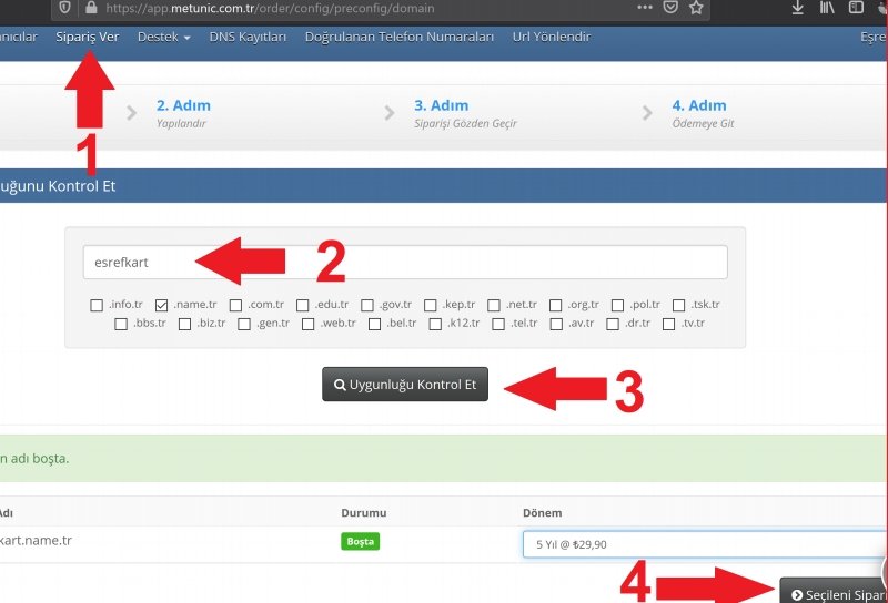 Öncelikle https://www.metunic.com.tr/ adresinden "ekart.name.tr" adresini 5 yıllığına yaklaşık 35TL ye satın aldım.